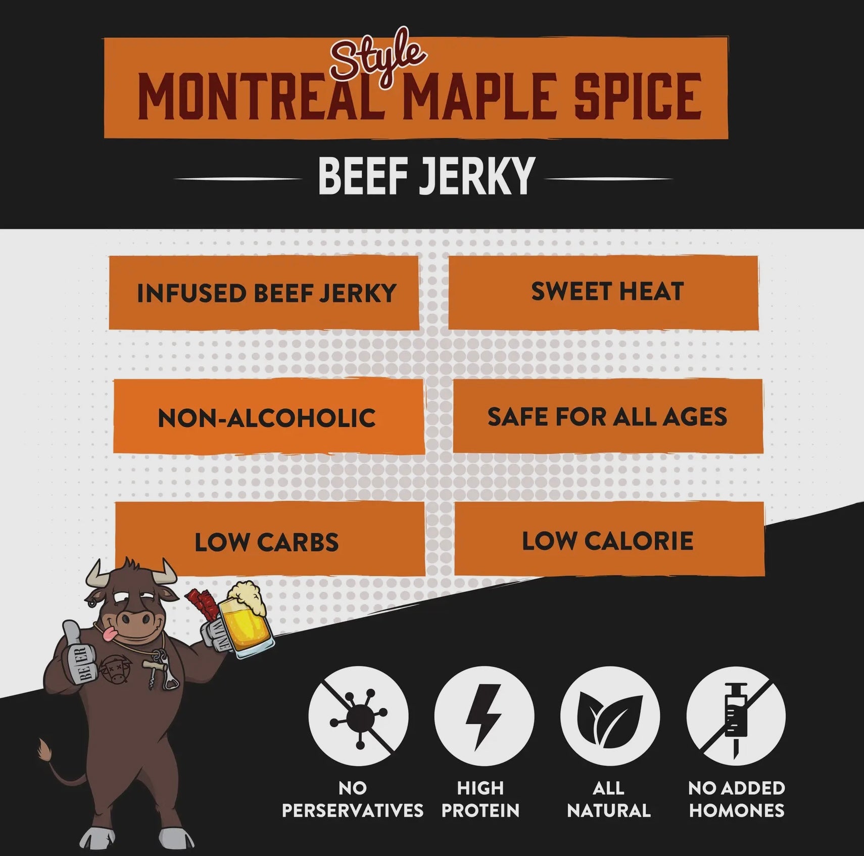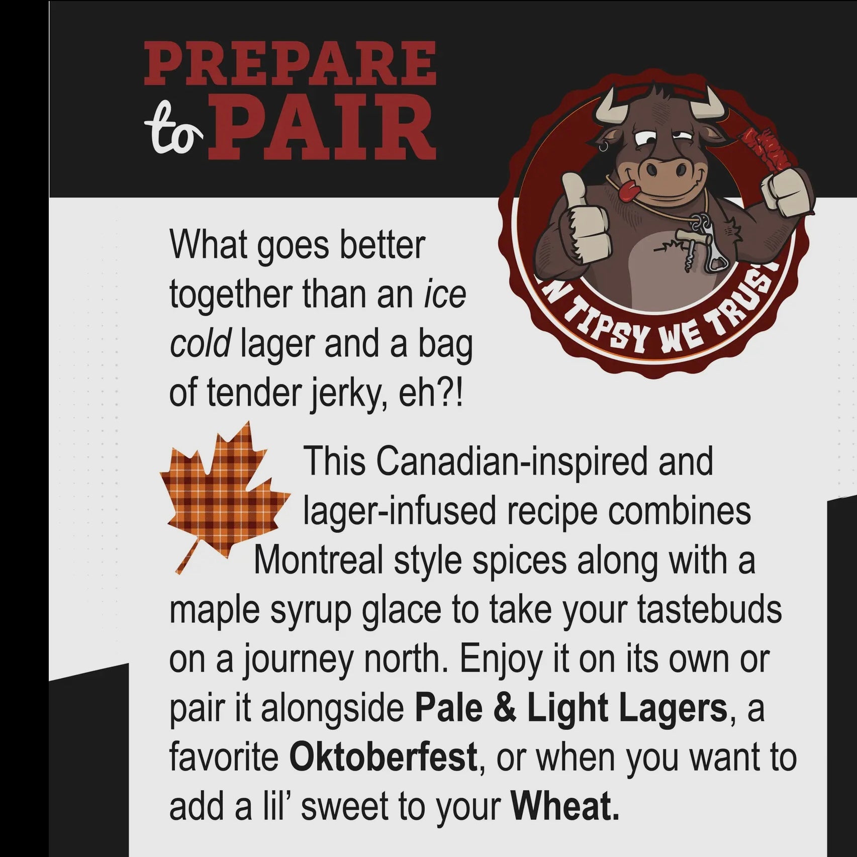 This Canadian-inspired, lager-lovin’ jerky brings the heat with bold Montreal spices and finishes with a sweet kiss of maple syrup. It’s like a flavor road trip straight to the Great White North.