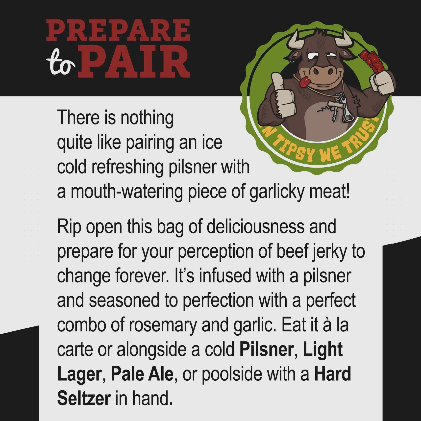 Snack it solo, pair it with your favorite wine, or crack a cold Pilsner, Lager, or Pale Ale—this jerky plays nice with them all.